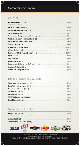 Carte des boissons